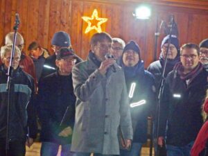 Der MGV Seershausen hatte zum Singen unter dem Weihnachtsbaum Ecke Peiner Straße/Ohofer Weg geladen und knapp 100 zuhörende Bürger aus Seershausen und Umgebung weilten der Veranstaltung. Neben Feuertonnen sowie heißen und kalten Getränken gab es auch kleine Leckereien auf Spendenbasis. Der MGV präsentierte sich mit samt neuer Tontechnikanlage den Zuschauenden und eröffnete das Minikonzert mit „Bald ist wieder Weihnachtszeit“.