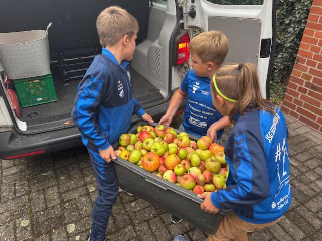 Die jungen „Waldkicker“ nehmen an einem Wettbewerb teil, bei dem es um das Mitmachen an Aktionen geht, die die Verantwortung für unsere Umwelt fördern. Hier war die alljährliche Apfel-und Mosternte ideal.