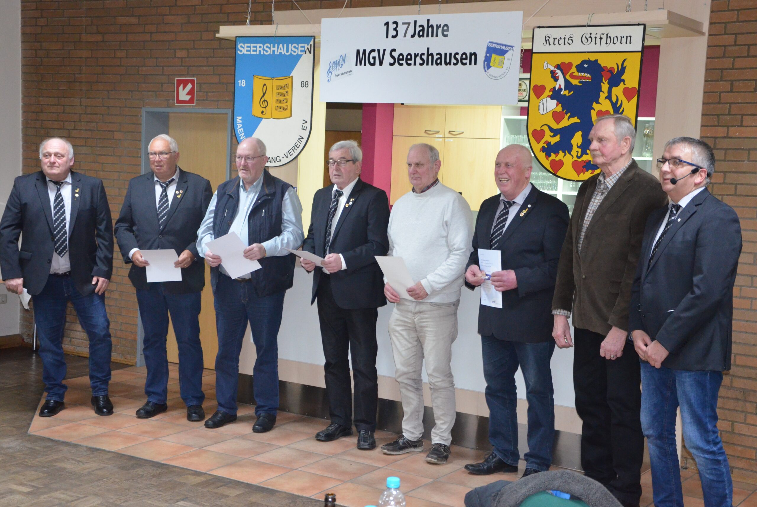 Für ihre langjährige Mitgliedschaft wurden die nachfolgend genannten Mitglieder geehrt. Für 60 Jahre aktive Mitgliedschaft: Erich Wiedenroth, für 50 Jahre aktive Mitgliedschaft: Hermann Homann, Heinrich Niebuhr und Otto Schepelmann, für 50 Jahre passive Mitgliedschaft: Rolf Schepelmann und für 40 Jahre passive Mitgliedschaft: Gerhard Baars. Eine Sonderehrung erhielt Uli Solkan für sein leidenschaftliches Engagement als 1. Vorsitzender.