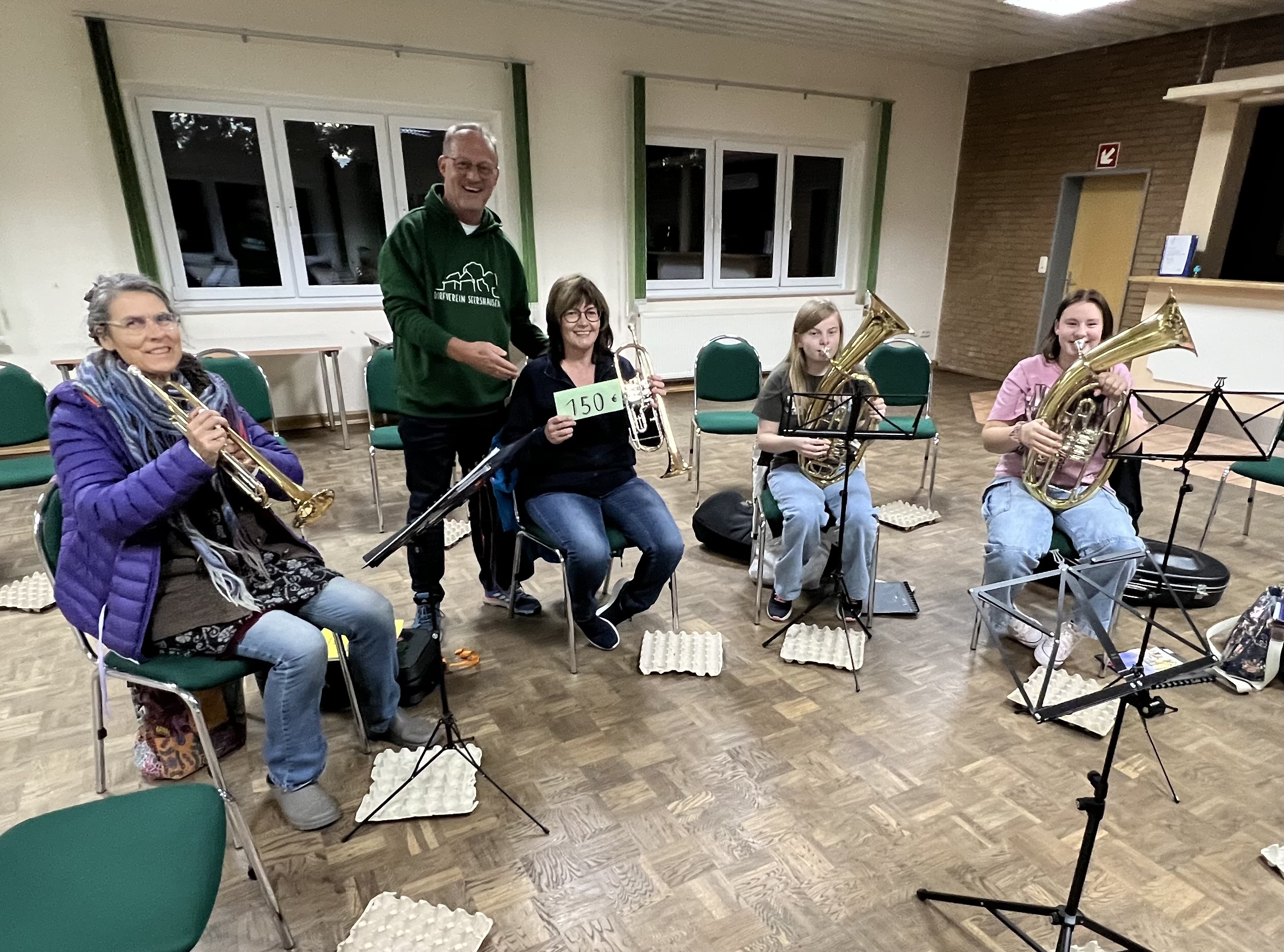 Auch der Durst konnte mit einigen Kaltgetränken gestillt werden. Die daraus entstandenen Erlöse wurden nun vom Dorfverein Seershausen an den Posaunenchor und dem Männergesangverein übergeben. Beide Vereine waren sichtlich erstaunt und freuten sich über die Spende von 150 € vom Dorfverein.