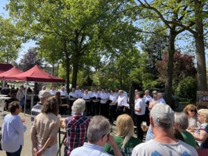 Mit einem abwechslungsreichen Programm wurden die Gäste durch den Tag geführt. Gestartet hat der Posaunenchor mit dem Lied „Der Mai ist gekommen“. Anschließend gab es den ersten öffentlichen Auftritt des Männergesangvereins mit der neuen Chorleiterin Claudia von der Brelje.
