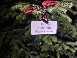 Am Samstag um 17 Uhr wurde unser neuer Weihnachtsbaum zum Leuchten gebracht. Er strahlt nun die nächsten Wochen und kann von Groß und Klein bei Anbruch der Dunkelheit bewundert werden. Ergänzend dazu natürlich die seit vielen Jahren etablierten Weihnachtssterne an der Straßenbeleuchtung.